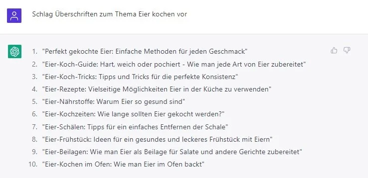 Auf Anfrage hat uns ChatGPT eine ganze Reihe von Überschriften geliefert.